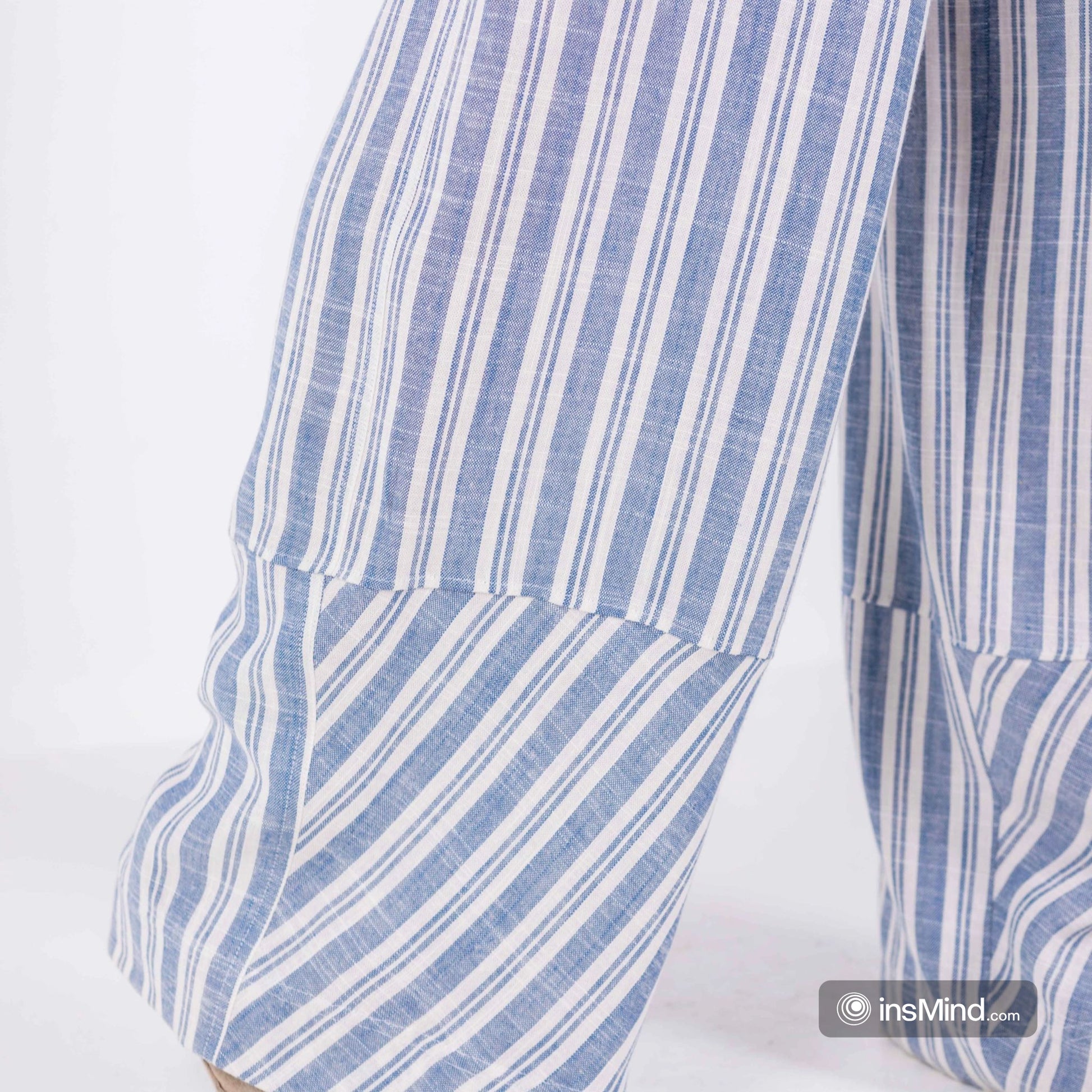 Blue Striped Wide Leg Linen Trousers,A breezy, beachy and summery wide-leg pant that delivers unreal style & comfort.