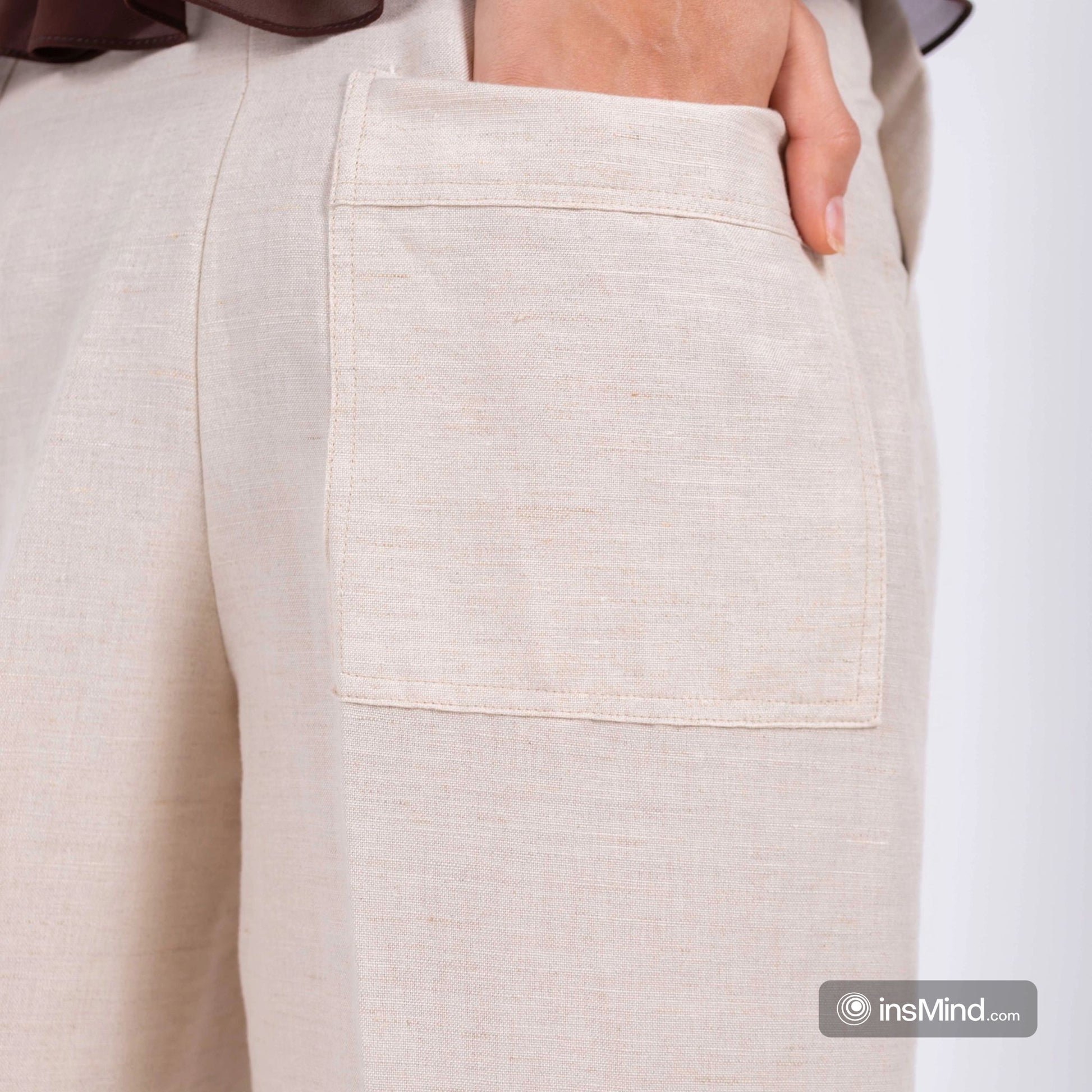 Linen Beige trouser - mid rise pant with a relaxed, wide leg.